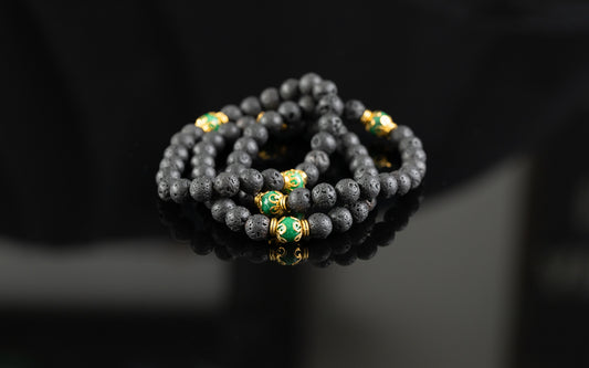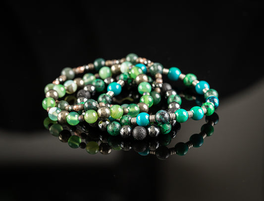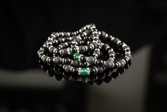 DURGA COLLECTION - Green Aventurine / Onyx / Lava / Silver bracelet