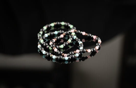 THEIA COLLECTION - Pink Jade / Flourite / Hematite / Onyx bracelet